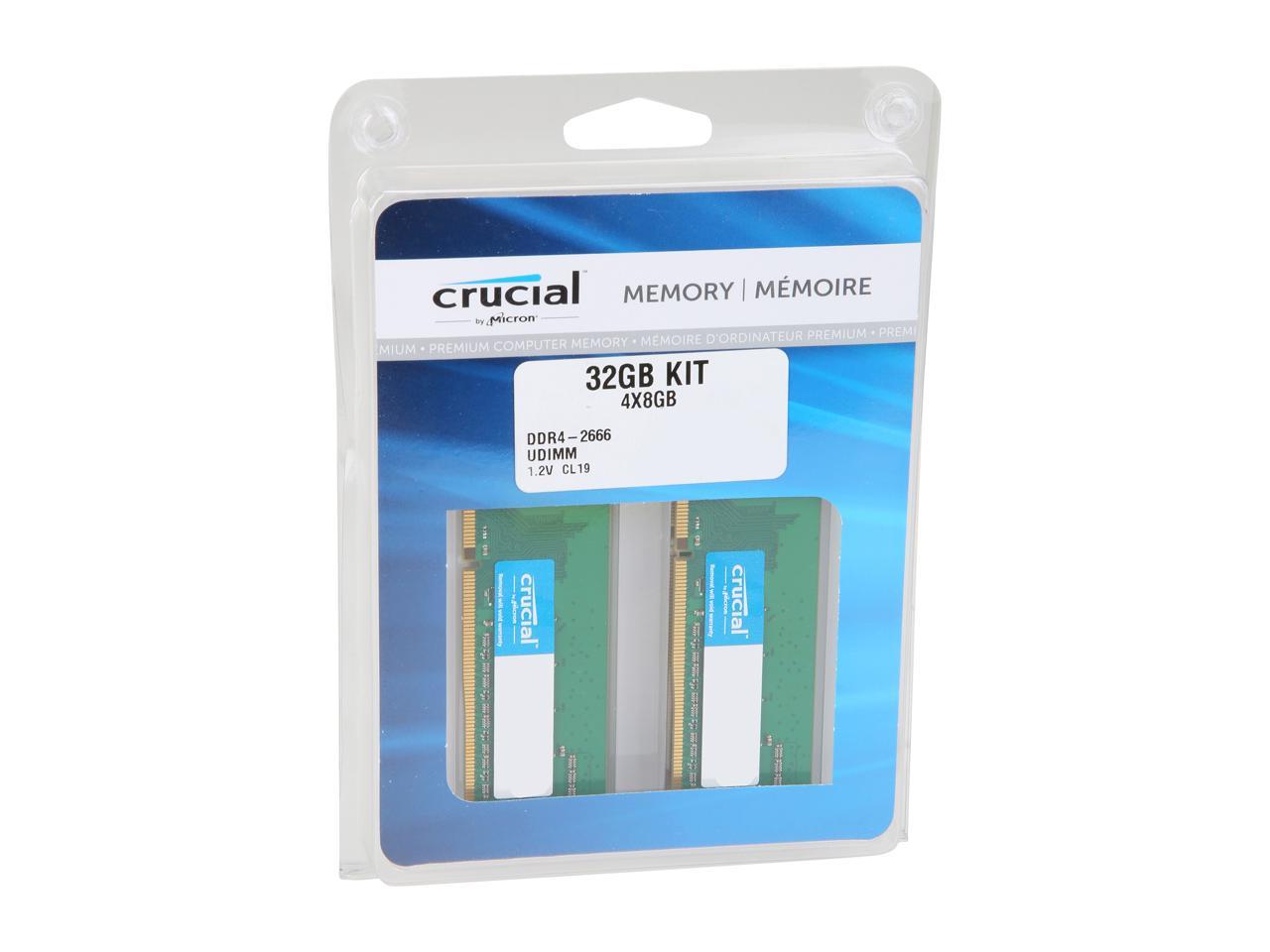 Crucial 32GB (4 x 8GB) DDR4 2666MHz DRAM (Desktop Memory) CL19 1.2V SR DIMM (288-pin) CT4K8G4DFS8266