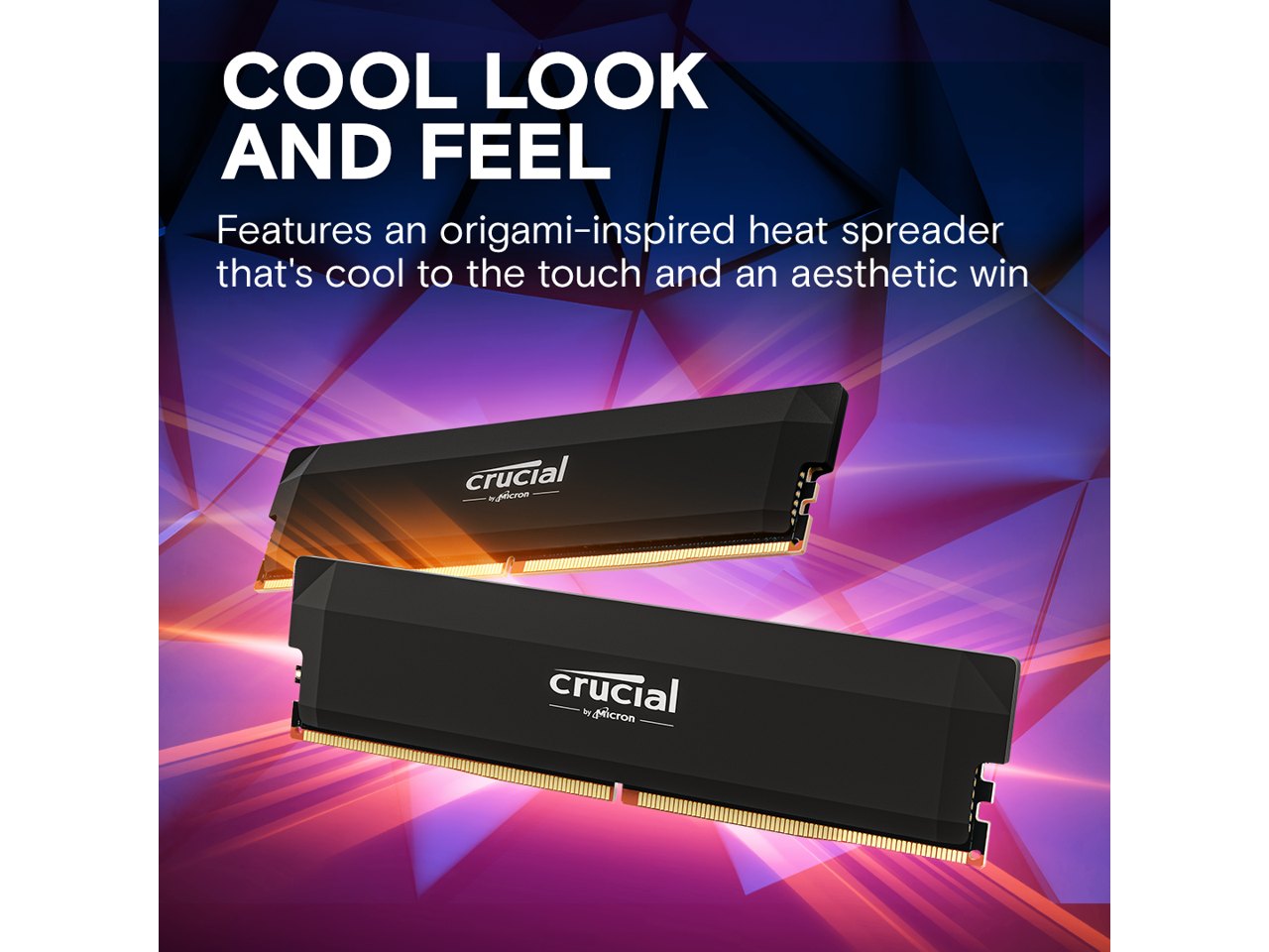 | Features | * 6000MT/s at 36-38-38-80 extended timings for stable overclocking performance and 25% lower latency than Crucial Pro Plug-and-Play DRAM modules, * Compatible with Intel Core 12th Gen desktop CPUs and above. Also, compatible with AMD Ryzen 7000 Series desktop CPUs and above, * Game at higher frame rates, multitask better, improve productivity, * Origami-inspired aluminum heat spreaders in black that are unique, playful and cooler to the touch |