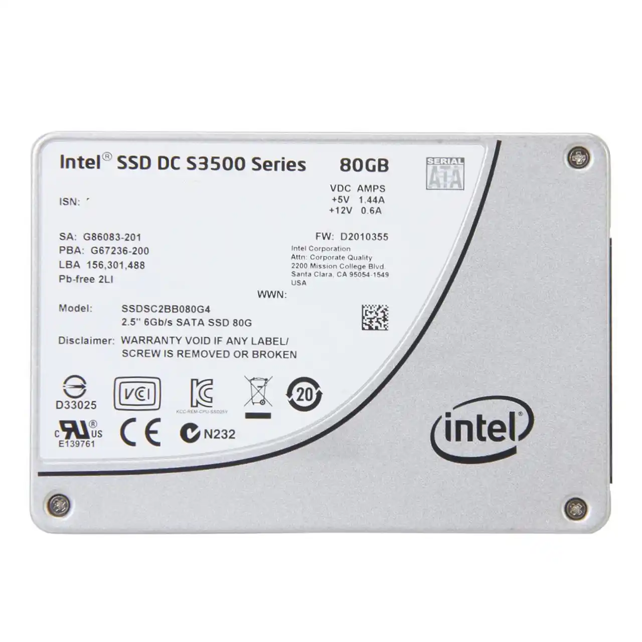 Intel DC S3500 SSDSC2BB080G401 2.5″ 80GB SATA III MLC Business Solid State Drive