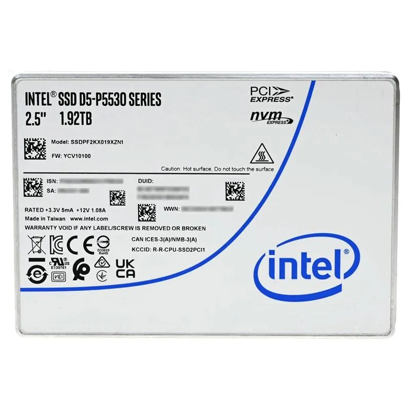 Intel D5 SSDPF2KX019XZN1. SSD capacity: 1.92 TB, SSD form factor: U.2, Component for: Server/workstation