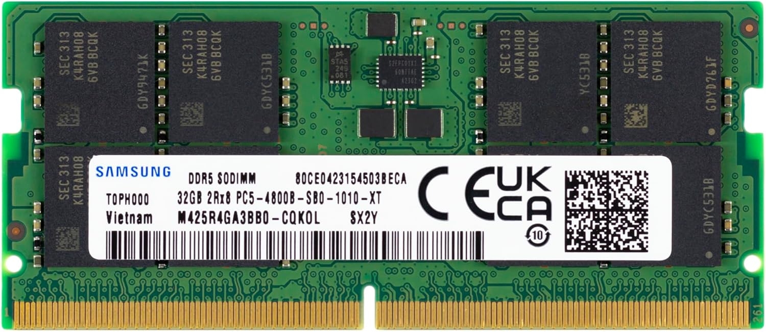 Samsung 32GB DDR5 4800MHz PC5-38400 CL40 SODIMM 2Rx8 Dual Rank 1.1V 262-Pin Laptop RAM Memory M425R4GA3BB0-CQK
