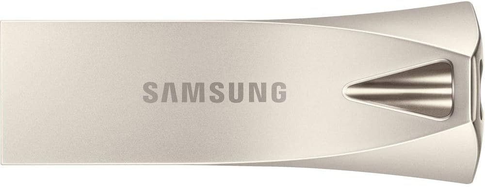 The Samsung Flash Drive Champagne Silver 256 GB offers high-capacity, ultra-fast data transfer with USB 3.1 performance, reaching speeds up to 400MB/s. Its sleek, durable metal design combines style with reliability, making it ideal for professionals and everyday users. Backed by Samsung’s trusted NAND flash technology, it ensures secure storage for large files, videos, and photos. Compact and portable, this flash drive is both water-, shock-, temperature-, magnet-, and X-ray-proof, delivering dependable performance in any environment.