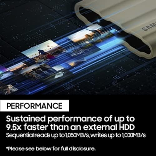 The SAMSUNG MU-PE1T0K/WW Portable SSD T7 Shield 1TB in Beige is a high-performance, ultra-durable external storage solution. It features fast USB 3.2 Gen 2 read/write speeds up to 1,050/1,000 MB/s, enabling quick file transfers and smooth 4K video editing. Its rugged, IP65-rated design offers water, dust, and drop resistance, making it ideal for on-the-go professionals and content creators. Compact and lightweight, it combines portability with advanced thermal control to prevent overheating. With AES 256-bit hardware encryption and wide device compatibility, the T7 Shield delivers secure, reliable, and stylish storage anywhere.