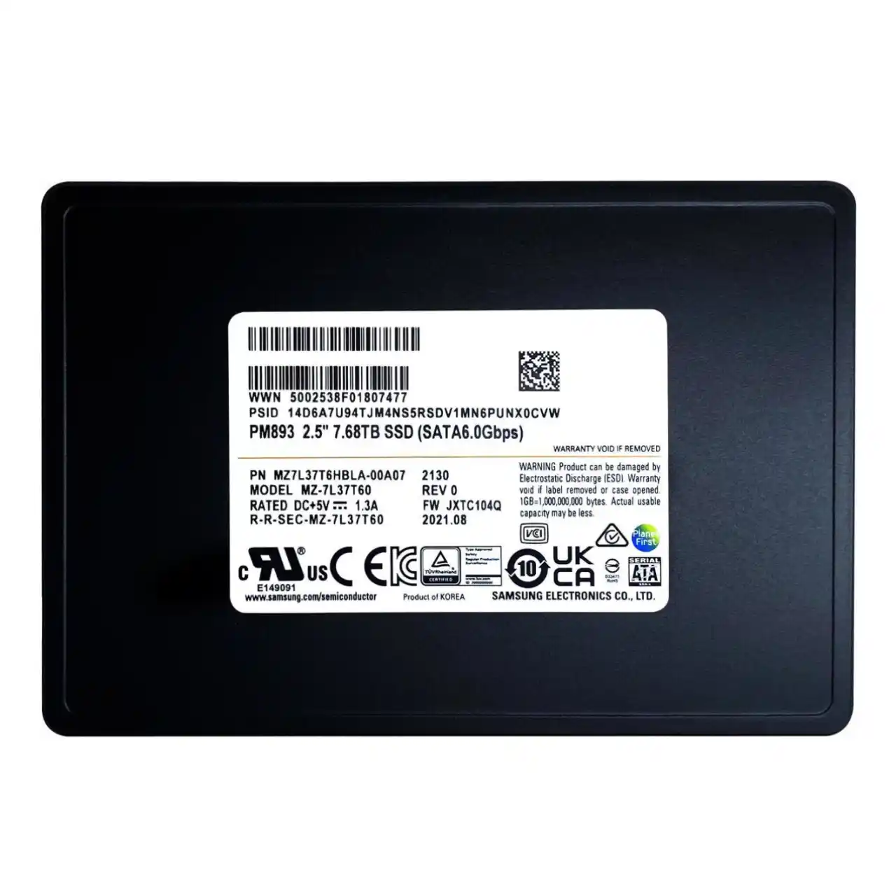 Samsung PM893 7.68TB SATA 6Gb/s 2.5″ Enterprise SSD MZ7L37T6HBLA-00A07 (MZ-7L37T60)