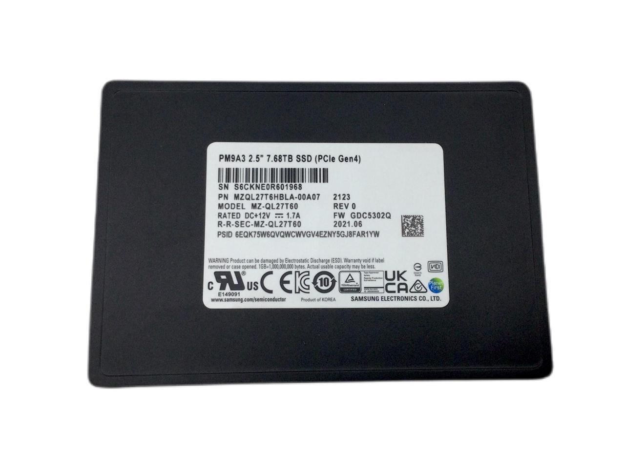 Samsung PM9A3 7.68TB PCIe Gen4 x4 NVMe U.2 Data Center SSD MZ-QL27T60 (MZQL27T6HBLA-00A07)