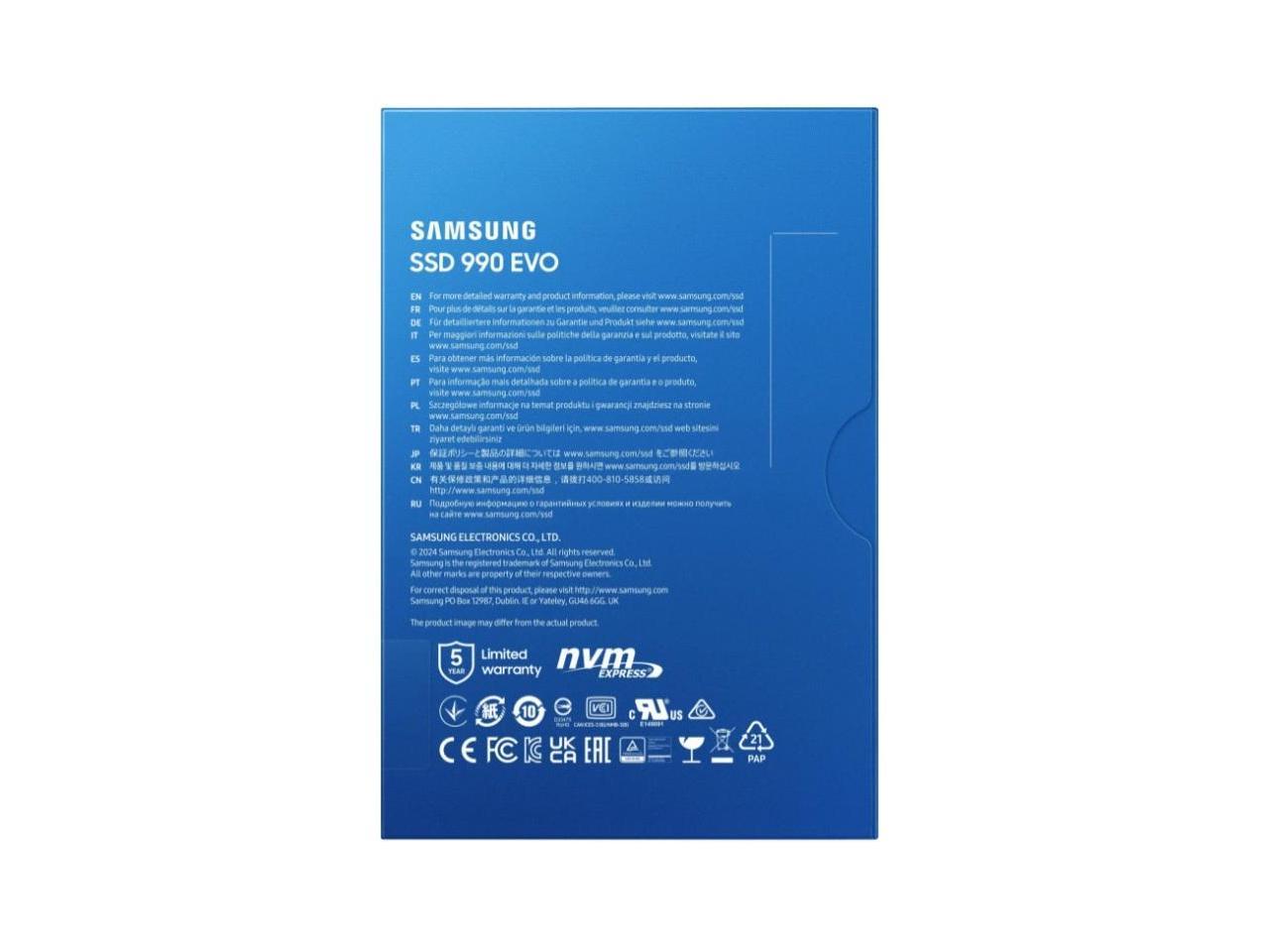 SAMSUNG SSD 990 EVO 1TB PCIe 4.0 x4 and PCIe 5.0 x2 M.2 2280 Up to 5,000MB/s NVMe 2.0 Internal Solid State Drive MZ-V9E1T0BW