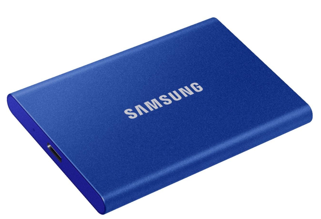Samsung T7 1TB Portable SSD Hard Drive Transfer in a flash Transfer massive files within seconds with the incredible speed of USB 3.2 Gen 2 on the T7. The embedded PCIe NVMe technology facilitates sequential read/write speeds of up to 1,050/1,000 MB/s, respectively, making the T7 almost twice as fast as the previous T5 model. Built strong and secure SSD stands for Solid State Drive, which means it’s built with no moving parts. The hardware can be secured with an AES 256-bit encrypted password and is encased in a sturdy metal body that keeps data intact from falls of up to 2 meters. The T7 is confidently backed by a 3-year limited warranty. Sophisticated thermal solution Use T7 without worrying about overheating. The T7’s advanced thermal solution uses ePCM technology and the Dynamic Thermal Guard to withstand and control heat, so the compact SSD stays at an optimal temperature even at fast speeds. Sleek and compact style Pocket-sized and slim, the lightweight body comes standard on the T7. Roughly the size of a credit card and weighing in at 58 grams, the solid aluminum unibody construction fits comfortably in the palm of your hand. Find your best fit The T7 gives you a range of options so you can find your perfect match. Pick a colour from classic black to striking blue and red, and choose from three capacities to fit what your lifestyle demands: 500GB, 1TB, or 2TB. Management software The T7 comes embedded with upgraded software for PCs and Macs to help you set up a password and get the latest firmware updates. You can also download the mobile app for Android smartphones and tablets. World’s No. 1 Flash Memory Experience the superior performance and reliability that you can only get from the world’s number one brand for flash memory since 2003.