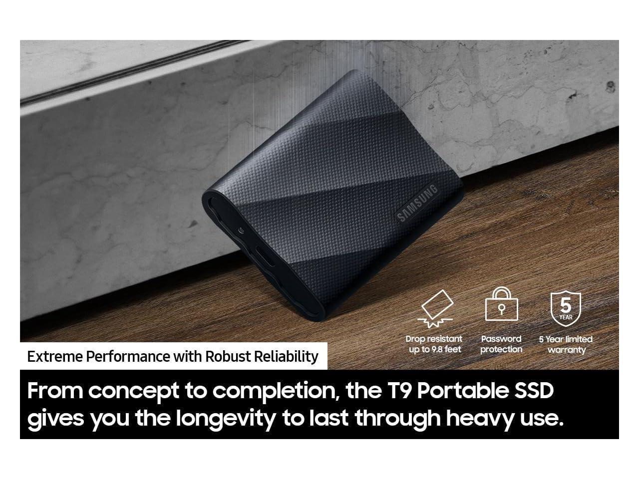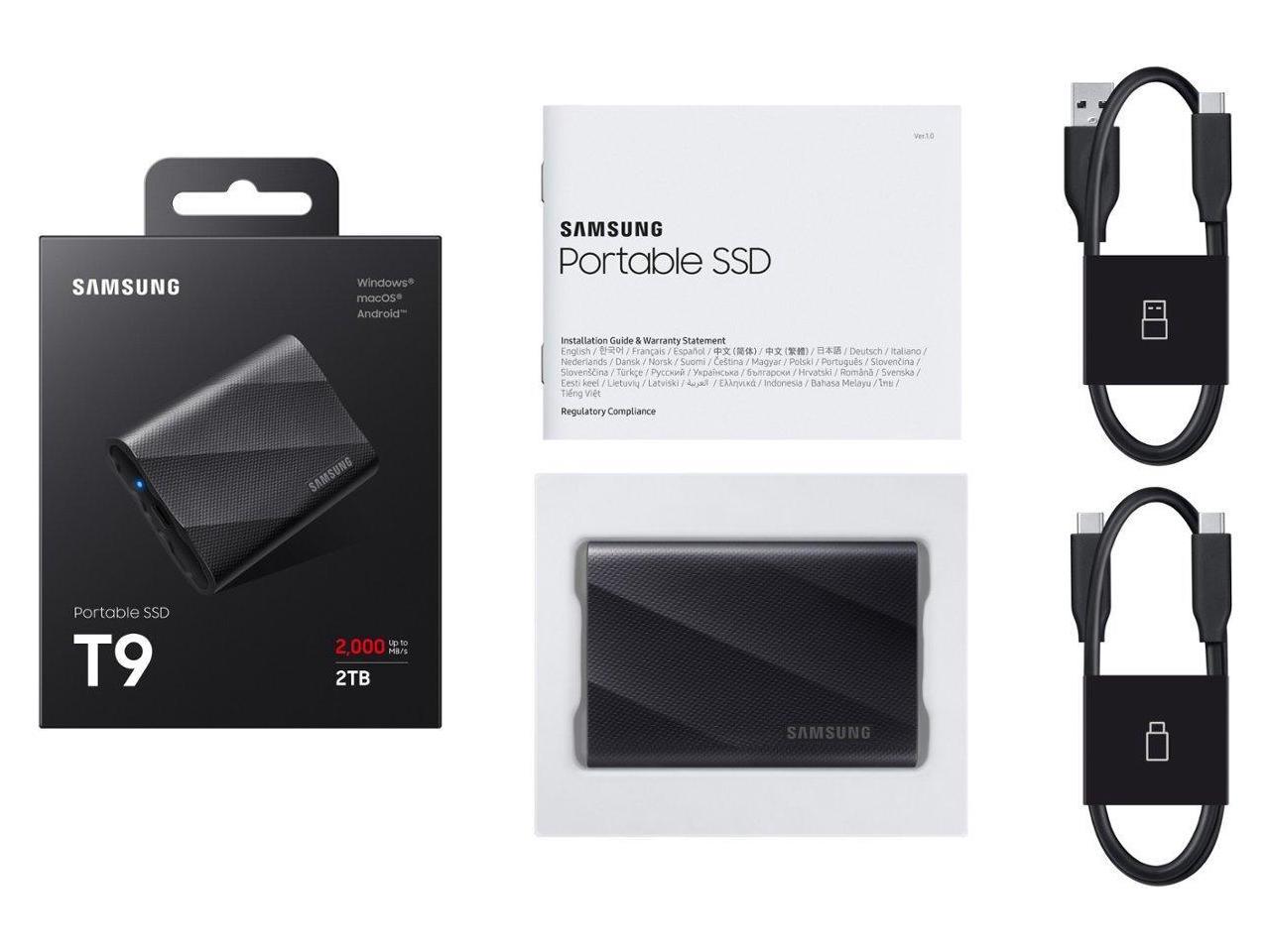 SAMSUNG T9 Portable SSD 2TB Black, Up-to 2,000MB/s, USB 3.2 Gen2, Ideal use for Gaming, Students and Professionals, External Solid State Drive MU-PG2T0B
