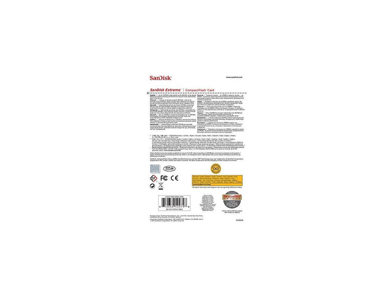 SanDisk 128GB Compact Flash (CF) Flash Card Model SDCFXSB-128G-G46