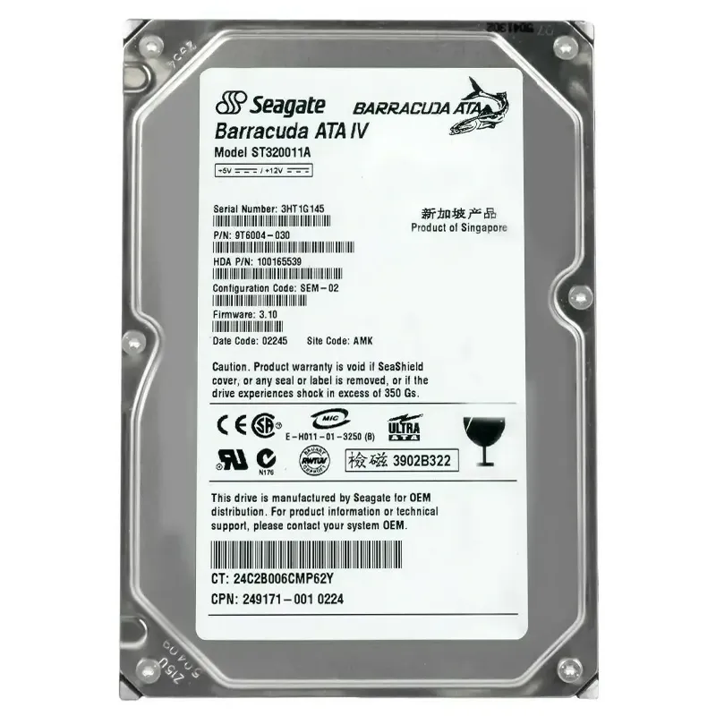 Seagate Barracuda ATA IV ST320011A 20GB 7200 RPM 2MB Cache IDE Ultra ATA100 / ATA-6 3.5″ Hard Drive Bare Drive