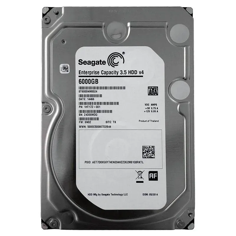 **Seagate Enterprise Capacity 3.5 HDD 6TB (ST6000NM0024):** A high-performance enterprise-grade hard drive offering 6TB storage, 7200 RPM speed, and a 128MB cache for rapid data access. Features a SATA 6Gb/s interface and 512e sector formatting, ensuring compatibility and efficiency in large-scale environments. Built for 24/7 reliability, it excels in data-intensive workloads with enterprise durability, reduced latency, and optimized error correction. Ideal for servers, data centers, and storage arrays requiring robust, high-capacity storage with consistent throughput and low power consumption. Combines Seagate??s enterprise expertise with advanced vibration tolerance for seamless multitasking and mission-critical operations.