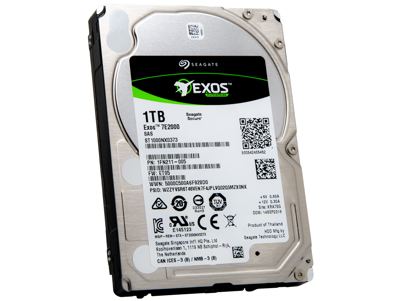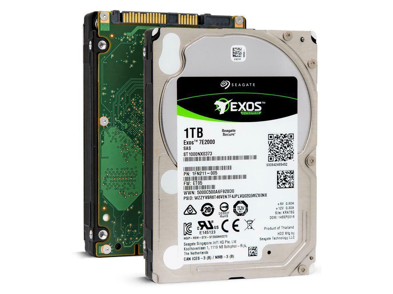 **Seagate Exos 7E2000 1TB 7200-RPM SAS HDD (ST1000NX0373):** A high-performance 2.5-inch enterprise hard drive designed for data centers, featuring 12Gb/s dual-port SAS for redundancy, 128MB cache, and 7200-RPM speed to ensure rapid data access and reliability. Optimized for 24/7 workloads, its 512e sector format ensures broad compatibility, while enterprise-grade durability and compact form factor maximize storage density. Ideal for mission-critical applications requiring low latency, high throughput, and failover support. Combines enterprise capacity with robust performance for scalable, resilient storage solutions.