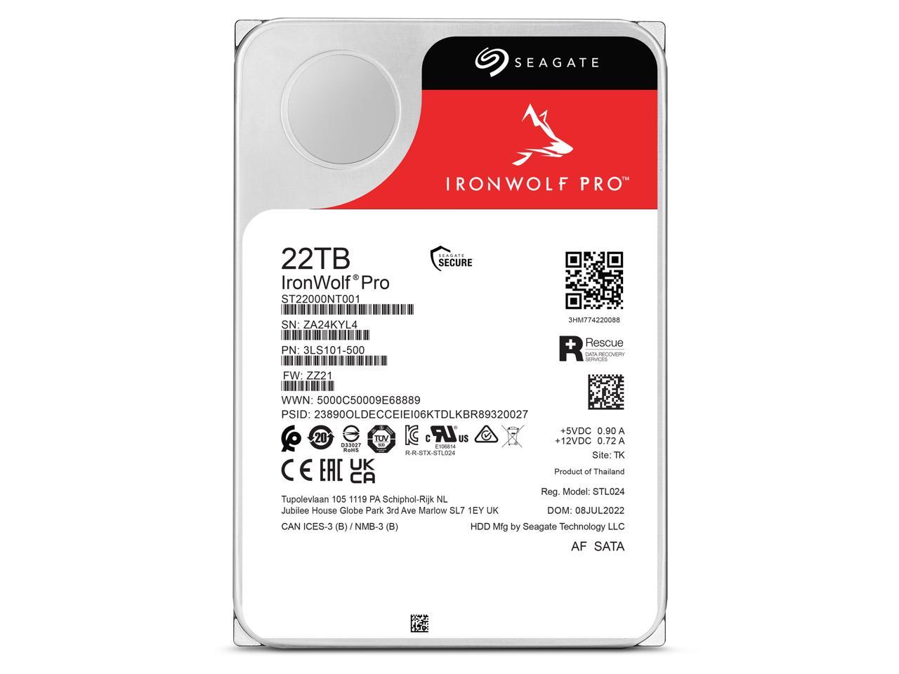 Seagate IronWolf Pro 22TB Enterprise NAS Internal HDD C CMR 3.5in SATA 6Gb/s 7200 RPM (ST22000NT001)