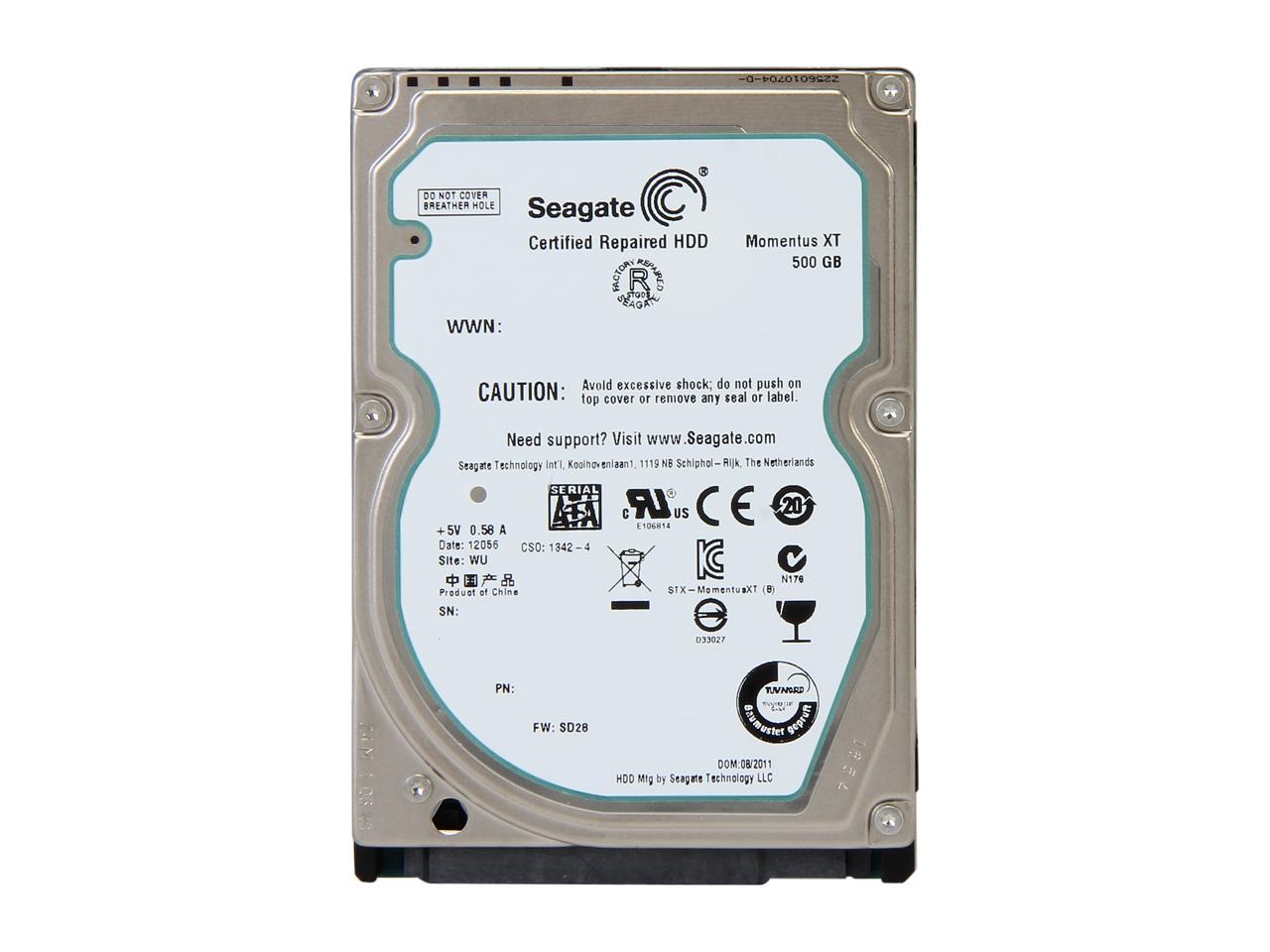 Seagate Momentus XT ST95005620AS 500GB 7200 RPM 32MB Cache SATA 3.0Gb/s 2.5?? Solid State Hybrid Drive (Manufacturer Recertified) combines a 500GB HDD with SSD technology for accelerated performance, offering faster boot times and app launches than traditional hard drives. Key features include a 7200 RPM spindle speed, 32MB cache, and SATA 3.0Gb/s compatibility, ensuring quick data access and broad system support. Its hybrid design delivers SSD-like speed at HDD affordability, with ample storage for laptops or compact setups. As a factory-recertified product, it undergoes rigorous testing for reliability, providing a cost-effective upgrade path for users seeking enhanced performance without sacrificing storage capacity. Ideal for balancing speed, value, and storage in a 2.5?? form factor.