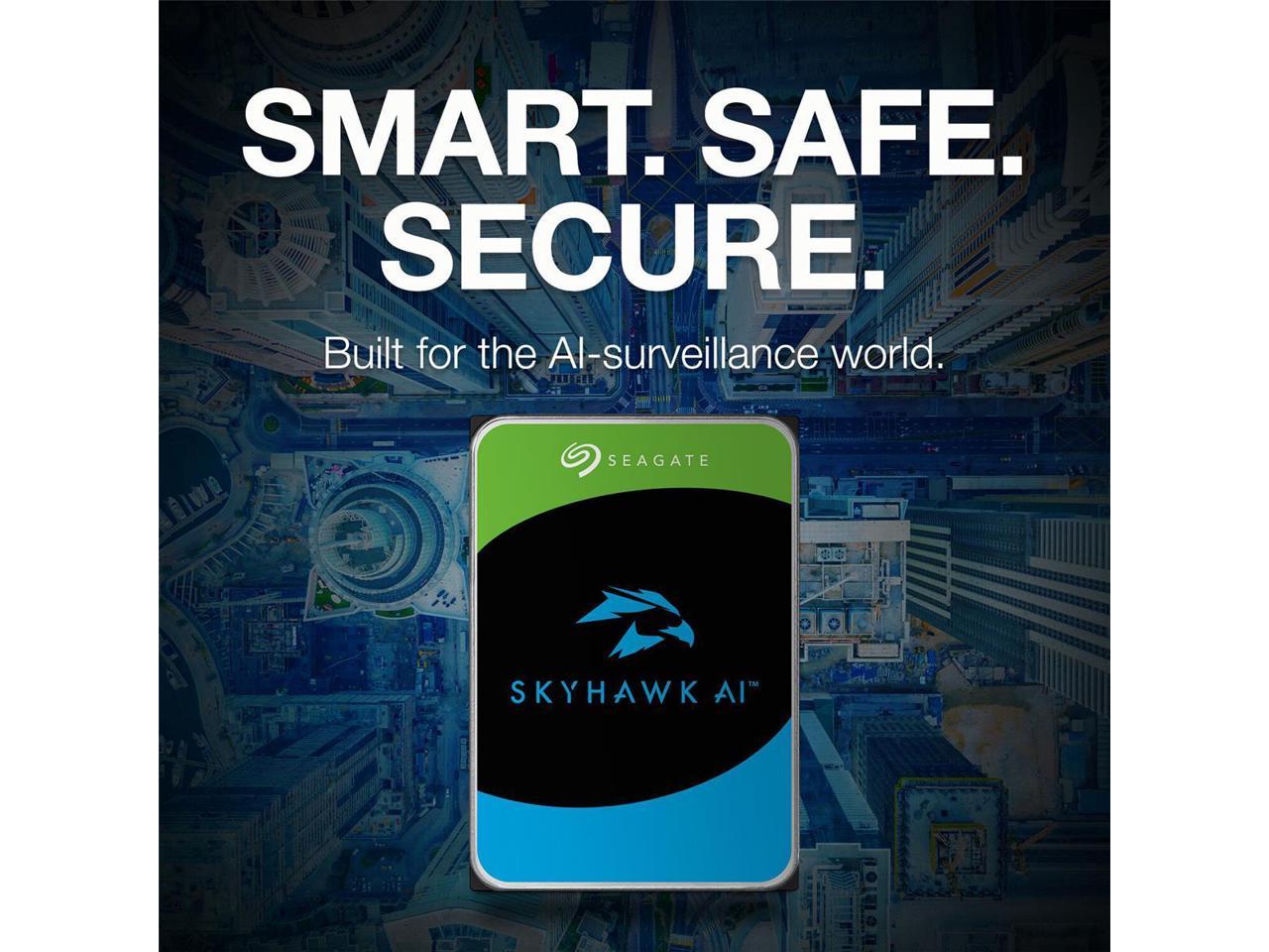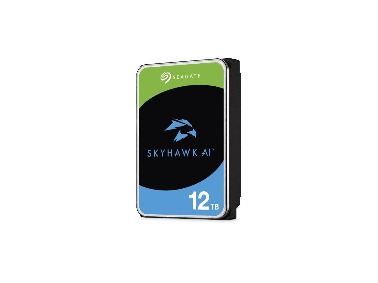 **Seagate SkyHawk AI 12TB SATA III 3.5?? HDD (ST12000VE003):** Optimized for AI-powered surveillance systems, this 12TB drive supports up to 64 HD cameras and 32 AI streams, ensuring seamless 24/7 video recording and analytics. Features include ImagePerfect AI firmware to minimize frame loss, rotational vibration sensors for stability in multi-drive setups, and a 550TB/year workload rating for heavy data demands. With RAID compatibility, built-in health management, and 3-year data recovery services, it delivers reliability, high performance, and robust data security for advanced surveillance environments.