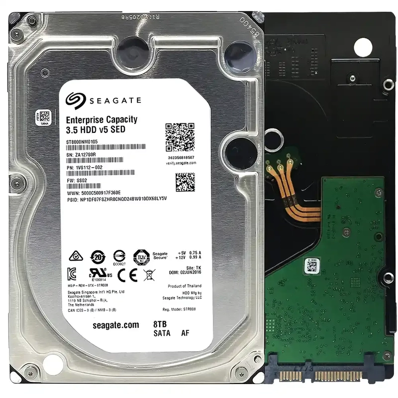 **Seagate ST8000NM0105 8TB SATA HDD**: Enterprise-grade 8TB 3.5-inch hard drive designed for high-demand environments, featuring 7200 RPM speed, 6Gb/s SATA interface, and helium-sealed technology for enhanced storage density and energy efficiency. Built for 24/7 operation with a 2.5M-hour MTBF, it ensures reliability, reduced downtime, and lower power consumption. Advanced error correction, RAID optimization, and 5-year warranty support data integrity and heavy workloads, making it ideal for data centers, cloud storage, and enterprise applications requiring scalable, high-capacity performance.