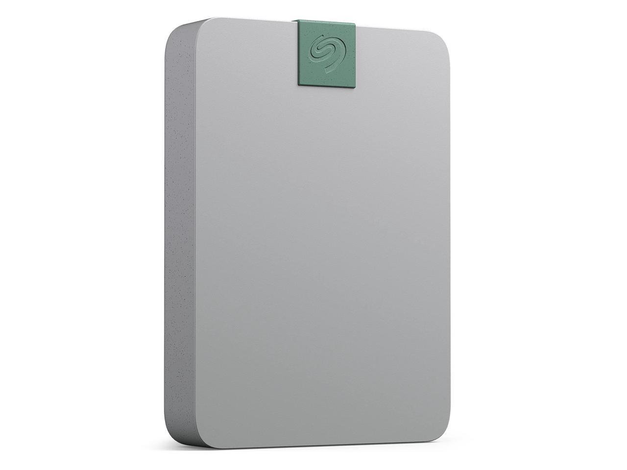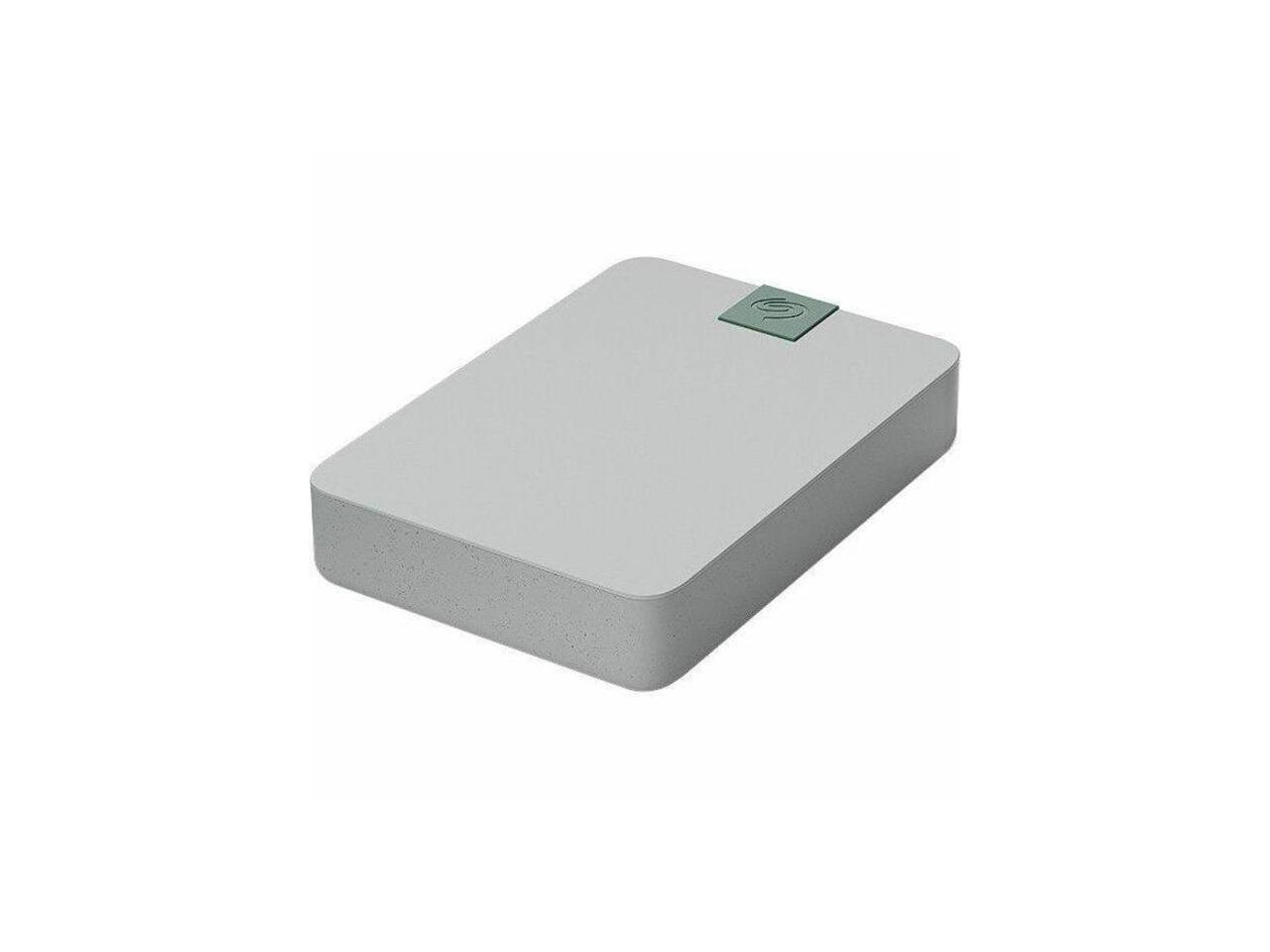**Seagate Ultra Touch HDD 5TB External Hard Drive (STMA5000400):** A high-capacity, eco-conscious storage solution with 5TB space in a sleek 15mm pebble-gray design. Features post-consumer recycled materials for sustainability, a textured finish for durability, and includes 6 months of Dropbox (2TB) and Mylio photo management. Offers reliable data backup, Rescue Services for recovery, and portable convenience. Combines environmental responsibility with robust performance for secure, expansive storage.