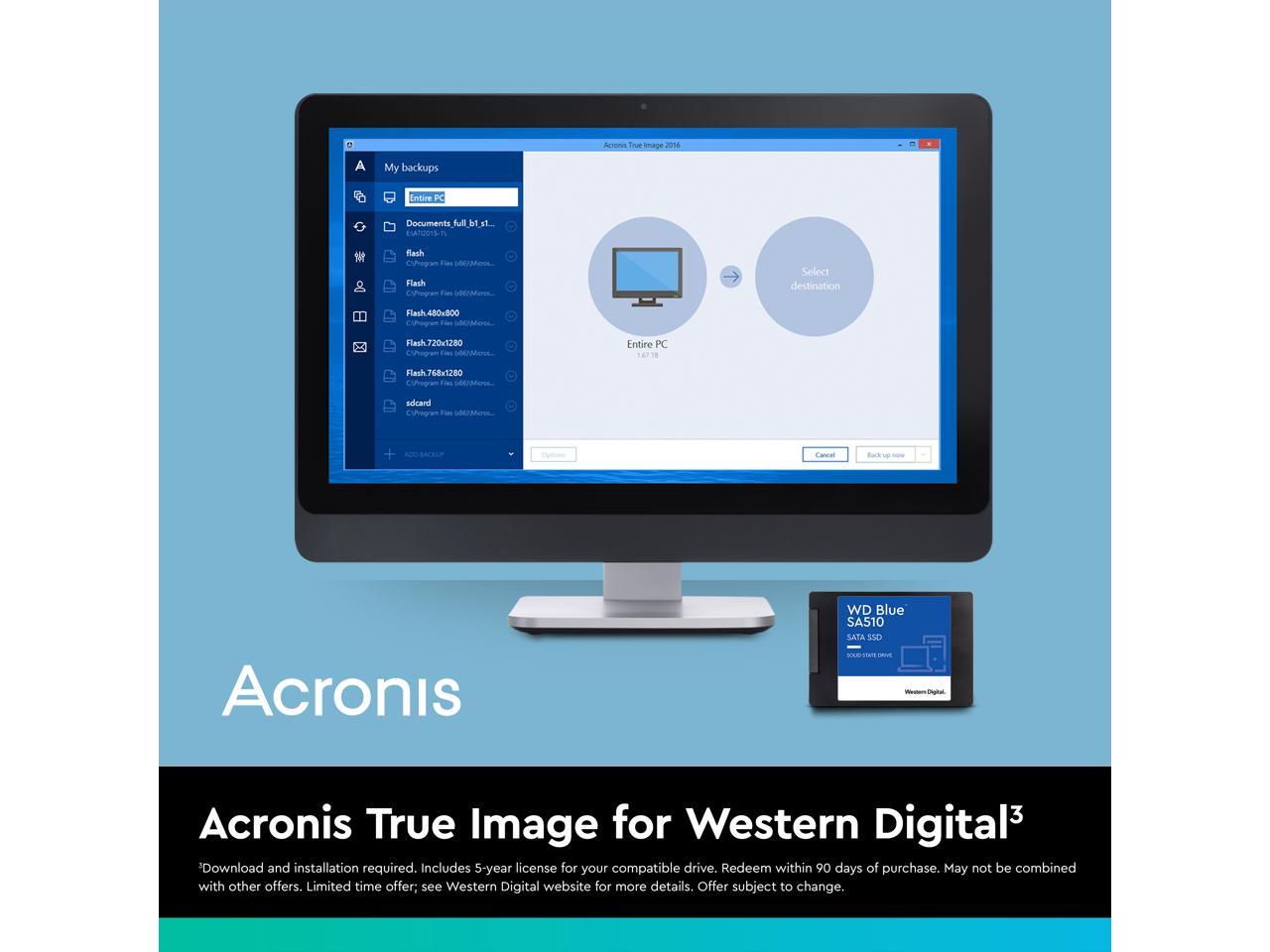 - Clone your computer’s entire hard drive to your WD Blue SA510 drive with the included Acronis True Image for Western Digital transfer and backup software featuring cyber protection.
