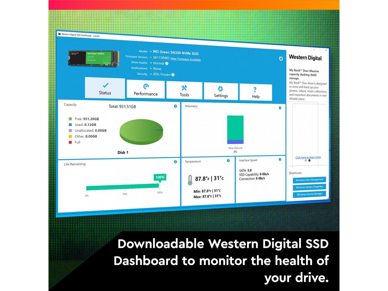 - Downloadable Western Digital SSD Dashboard monitors the health and usage of your drive
