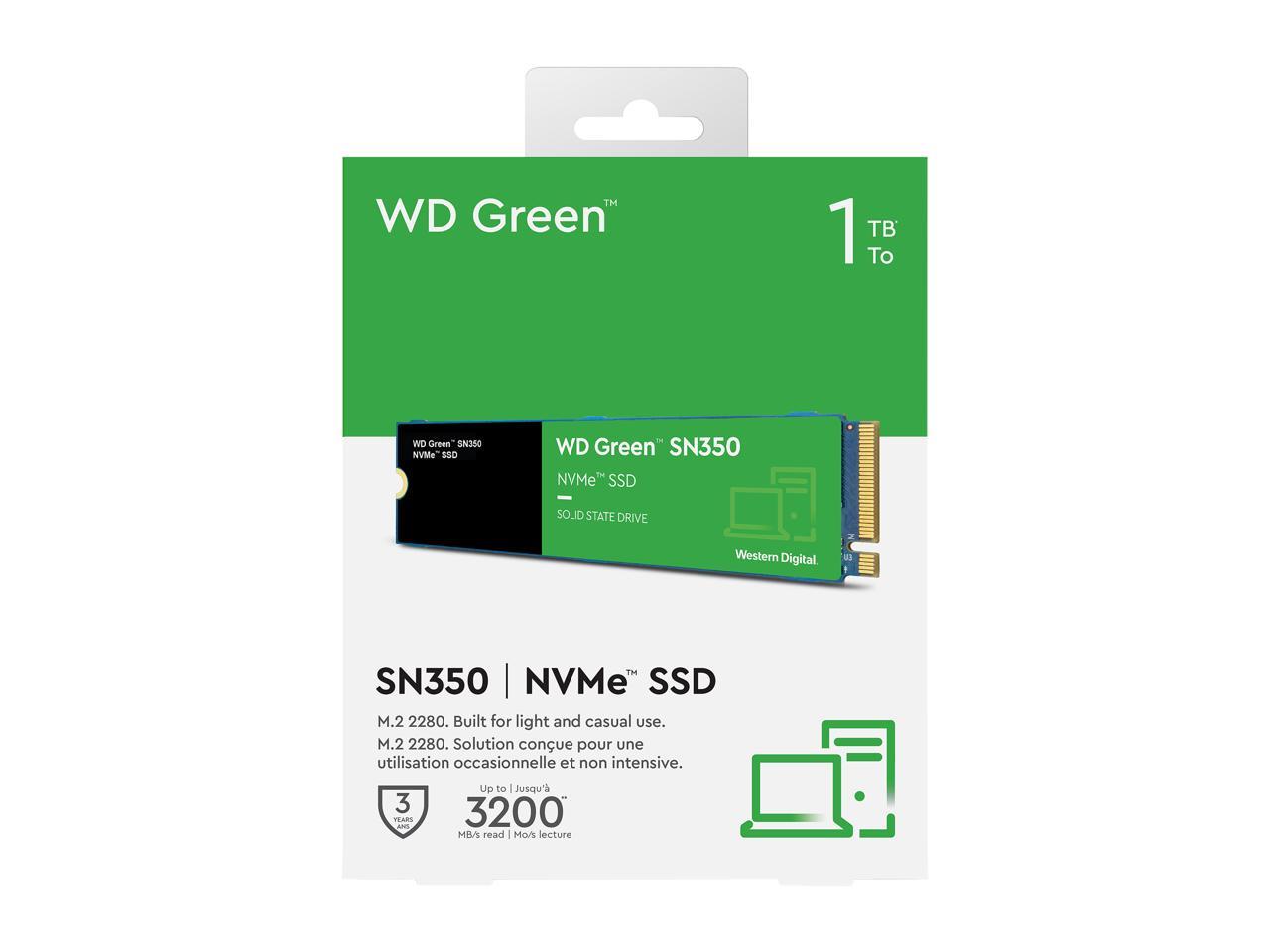 The Western Digital WD Green 1TB SN350 NVMe M.2 2280 SSD delivers fast and reliable storage with PCIe Gen3 x4 interface, offering read speeds up to 2,400MB/s for quicker boot times and application loading. Its compact M.2 2280 form factor makes it ideal for laptops and desktops with limited space. Designed for everyday computing, it enhances system responsiveness and energy efficiency. Backed by Western Digital’s trusted reliability and a 3-year limited warranty, the SN350 is a cost-effective upgrade for users seeking improved performance and durability over traditional hard drives.