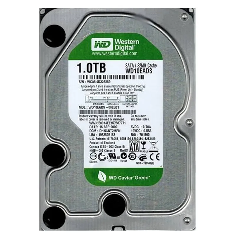 A high-capacity 1TB hard drive designed for reliable, energy-efficient storage. Features 7200 RPM speed for quick data access, a 32MB cache buffer for improved performance, and SATA 3.0 Gb/s compatibility. Optimized for low power consumption and reduced heat/noise via IntelliSeek and NoTouch ramp technology. Ideal for desktop storage, backups, or secondary drives, balancing eco-friendliness with dependable performance. USP: Combines Western Digital??s durability with energy-saving Green series design, offering cost-effective, sustainable storage for everyday use.